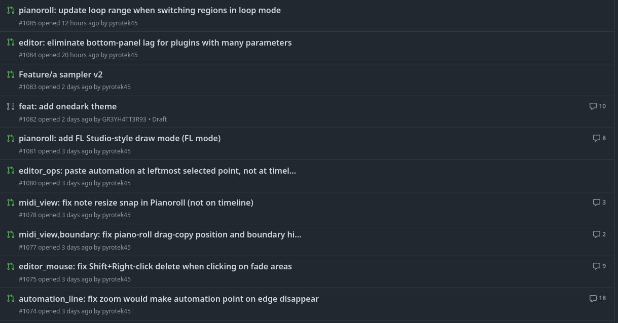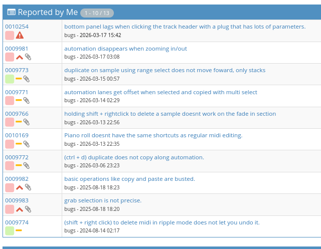 some of these bug reports are years old since if pointed them out. there are a couple that have been fixed ( one thanks to claude btw ), but i figured, this could help. even if they use the code as a way to help them fix it their way. I think using an LLM to help fix and find bugs or low hanging fruit is a good idea, and would benefit everyone and would allow the devs to work on more features, than doing the boring but needed work of polishing and bug fixes for what is often ( a few lines of code ) .i just want to share the code with them in case they would like to use it or integrate it their way. they have every right to reject it. but the idea that ardour shouldn’t have a sampler is kind of crazy to me, either way. anyways, yes i understand, stuff like a sampler would be more code to maintain, but, thats true with every feature they are adding. the problem is, all the old stuff that never gets fixed or polished anyways.