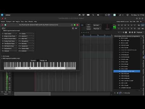 I used Fluida in this project (on Linux), if you don’t have fluida replace it with a plugin that can load soundfonts and load Acoustic Guitars JNv2.sf2 from the soundfont folder (in the the unzipped folder) into your plugin.