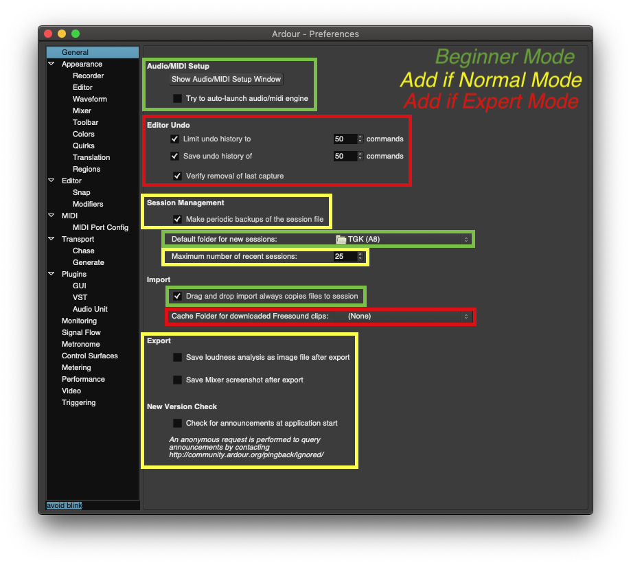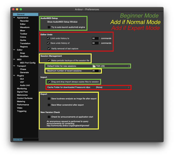 It is in fact the case that the Preferences pane in Ardour has grown substantially over the years (which is a good thing, ultimately), but for a newbie this can be completely overwhelming and deterring…