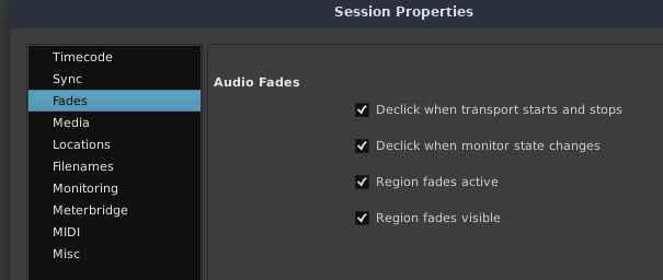 ok so does Ardour automatically create fades in and out for an audio track? the option above are for disabling fades completely and i dont want that.