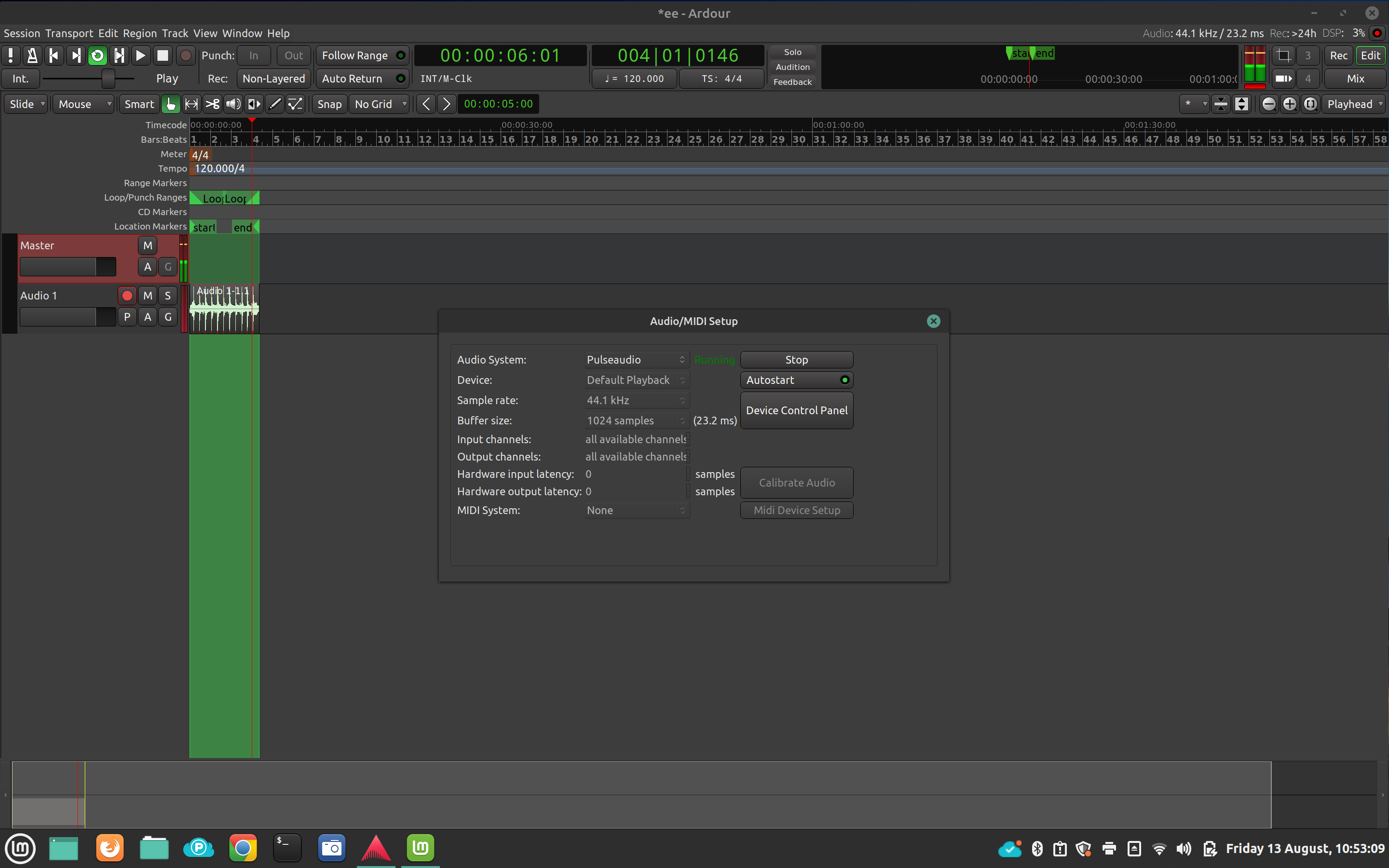 Still with Pulse Audio if I add another track the Pulse Audio volume control is registering my hand claps from the microphone but Ardour isn’t !!