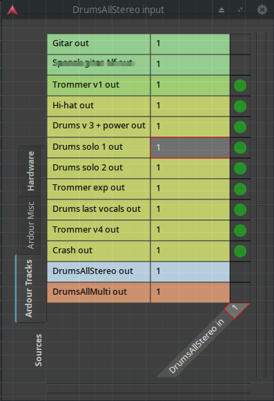 Also, the routing grid for the combined track is confusing: in addition to the MIDI tracks, 2 of the normal audio tracks can be chosen as input (see screenshot, the 2 tracks on top are normal audio tracks while the rest are MIDI:)