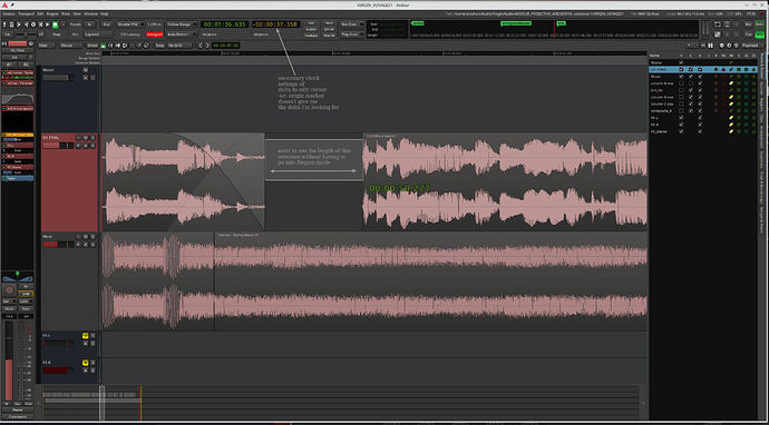 but I thought prior versions of Ardour had selection length (or what I called “delta”) info as green text under the end point time
