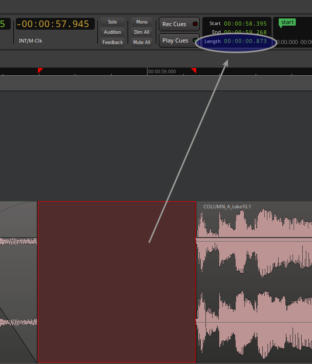 I vaguely remember in Ardour 6 when selecting an area in a track in the editor window a number would indicate the end-point time && underneath that was a delta time, i.e. a range beginning & end selection. Business has pulled me away from working on audio/music lately so Ardour memory could be fuzzy…