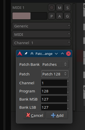 However, an additional NameSet Patch is not populated correctly. Either 127/127 or 0/0 are populated into the Bank MSB and LSB entry boxes. From the midnam file - it should be 0/0 in this case.