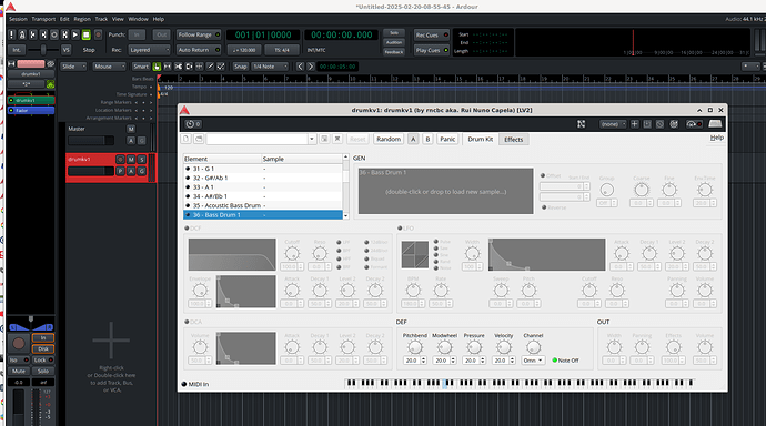 Am using drumkv1, samplv1 etc ver 0.9.24-1 (straight out of the repo), am still with Ardour 8.10… OS is AV Linux 21…
