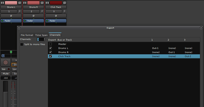 When I export audio in Ardour I only get the choice of Out 1 or Out 2