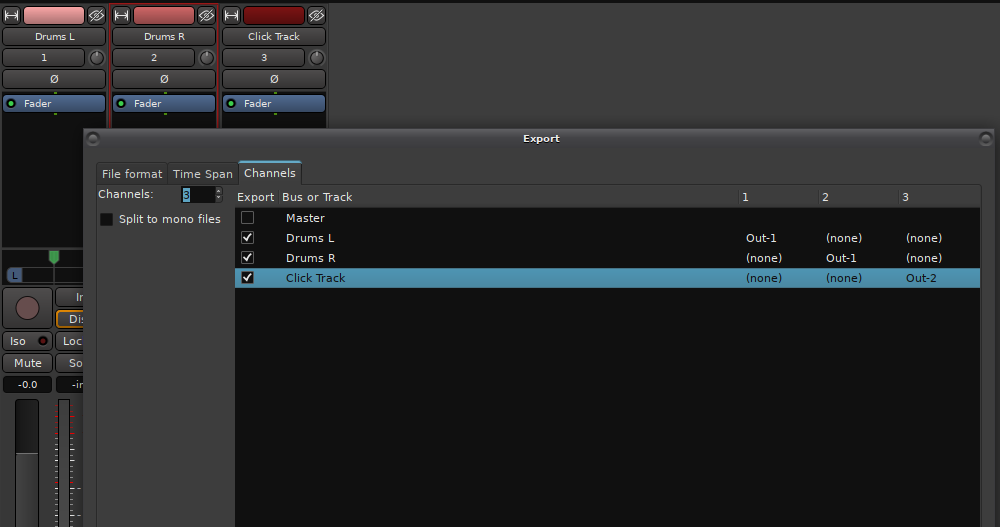 I want a file that I can play back in an app like VLC that has at least three channels. I want to use it for a band that uses backing tracks for the drummer when he can’t be there.
