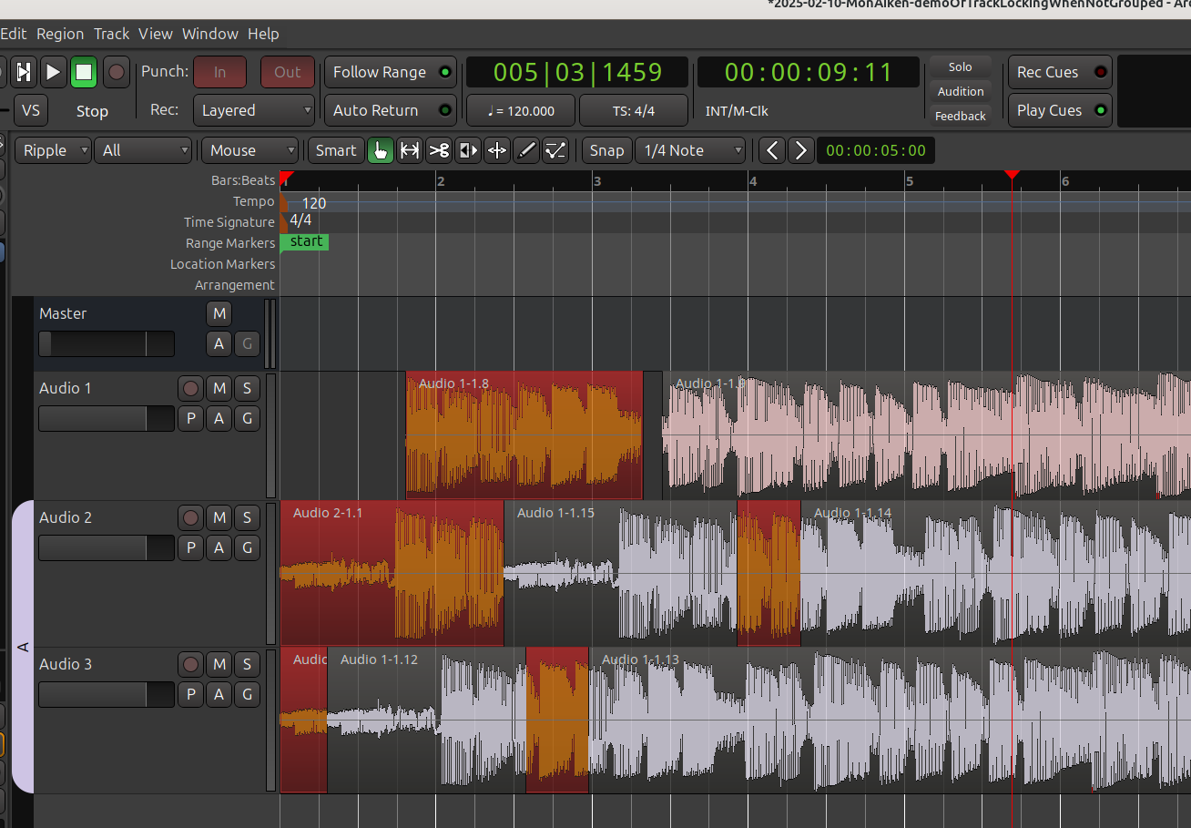 When I highlight a section of a single track, random other tracks are also highlighted. This happens whether or not the tracks are grouped.