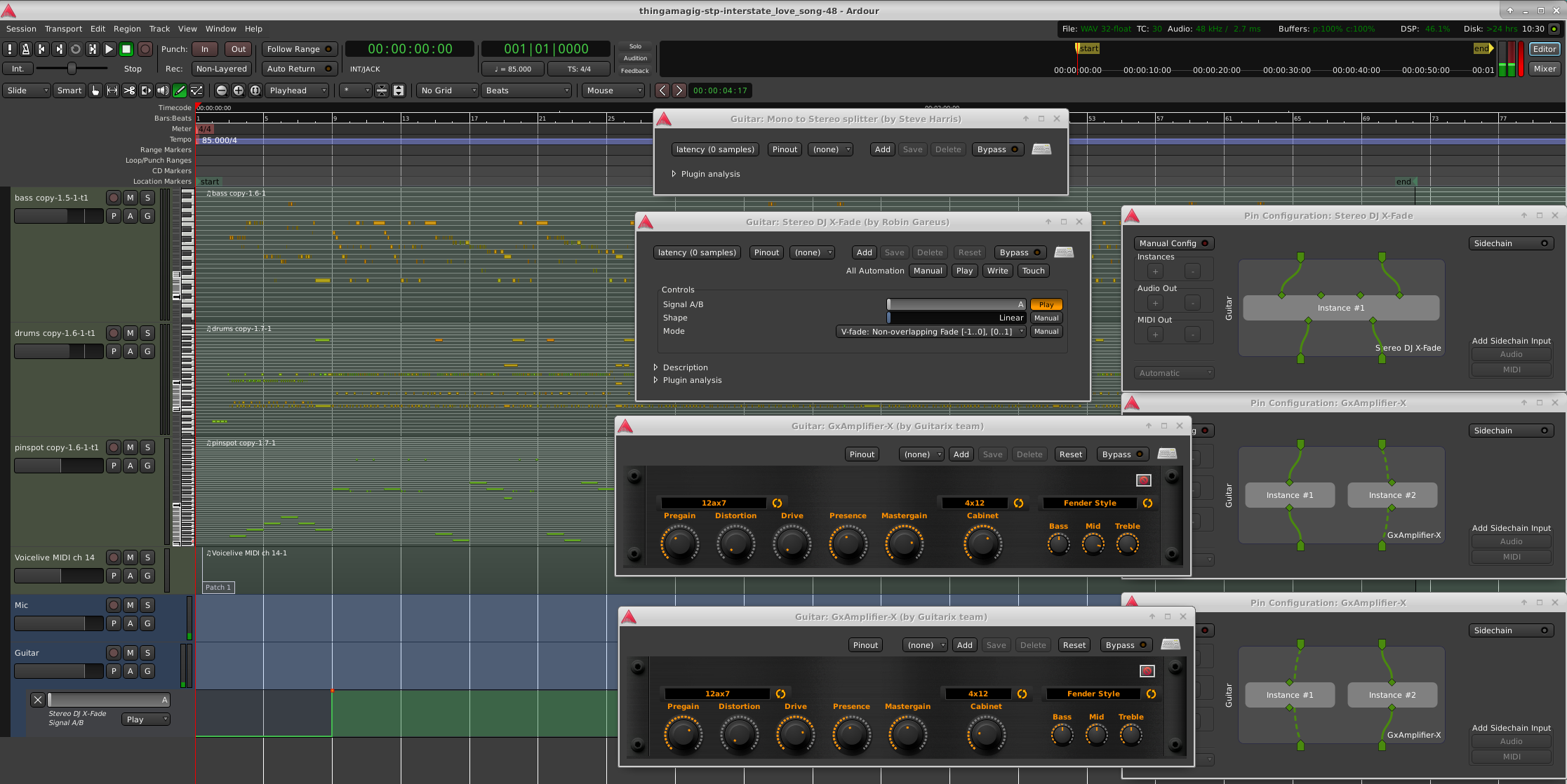 I thought you wanted to switch between two completely different plugins. In your case with two instance of gxamp, you could simply automate their settings. – Is there a reason why you didn’t do that?