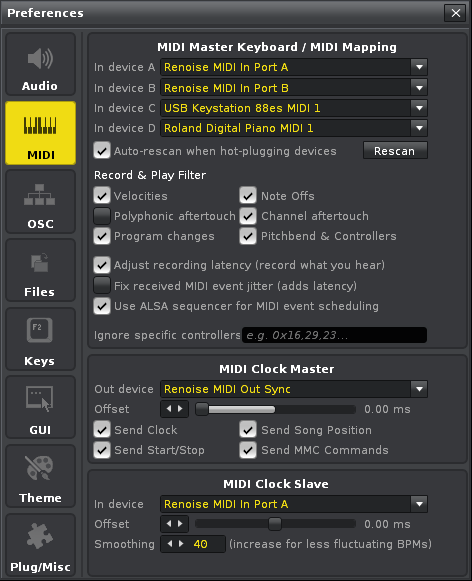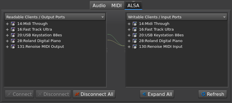 Is there a way to get these to show the actual device names, like “Roland digital piano” or “M-audio keystation88” instead? I’m always fumbling around to figure out which is which. I’d also like the session to remember the device names, instead of ID’s that might change between restarts of the software or the OS.