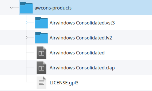 And if you want to install the VST3 version, copy the entire folder “Airwindows Consolidated.vst3” to the folder /home/youruser/.vst3