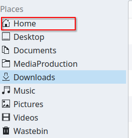 Then, click on the Home icon in the “Places” bar you should have on the right of the Dolphin window: