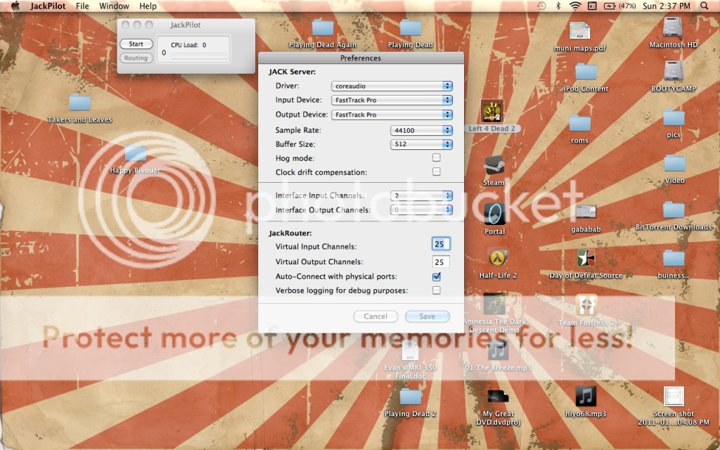 Get me a screenshot of your Jackpilot preferences when you get a moment please? Put it on tinypic, imagebin, etc. and give me a link here. Thanks.