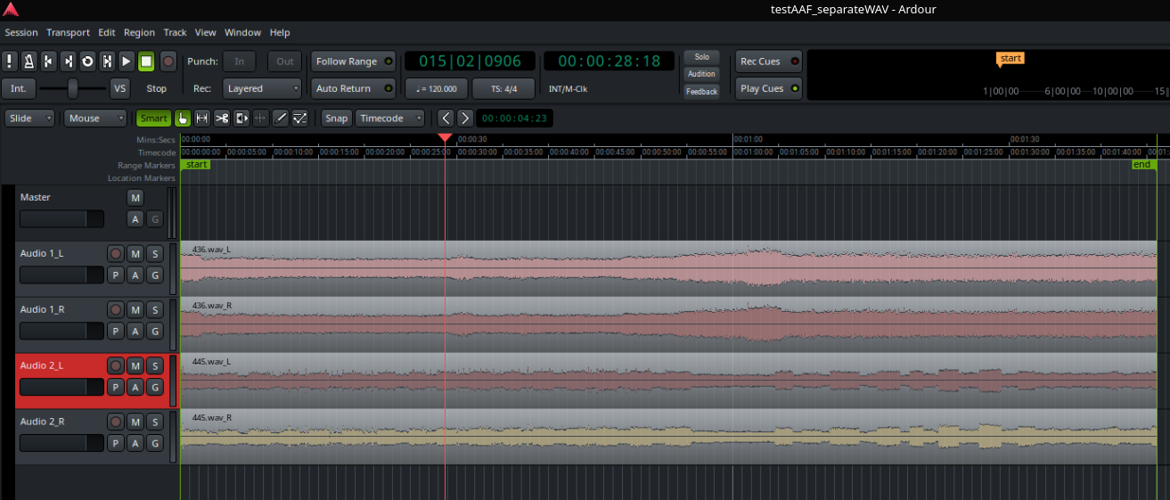 I tried to import an AAF session directly, previously exported from Premiere with embedded and separate audio, but both failed. I don’t know if I’m exporting the AAF incorrectly or the fuction in Ardour is not updated to newer AAF exports.