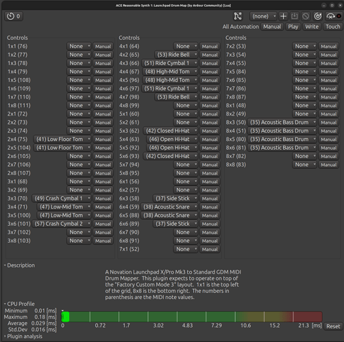 Edit 3: And in what I hope will be the final edit of this cycle, after testing with the sequencer it starts at C2 instead of C3 like the custom mode…so this is the new default note. Instructions remain for the custom 3 layout, but this should now provide a decent drum layout out of the box for most any place you happen to be drumming in the Launchpad modes. Some of the internal documentation has been updated to reflect these changes too, along with a few errors being corrected along the way.
