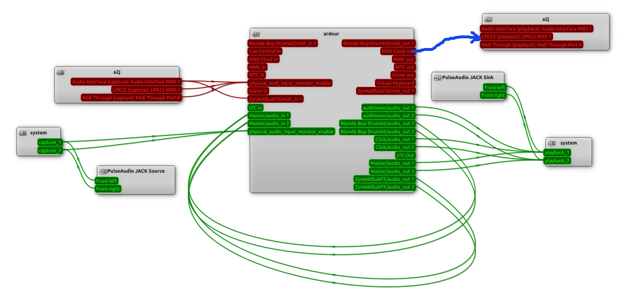 If I remove that, the connection from MIDI Clock out → LPK25 no longer gives a warning.