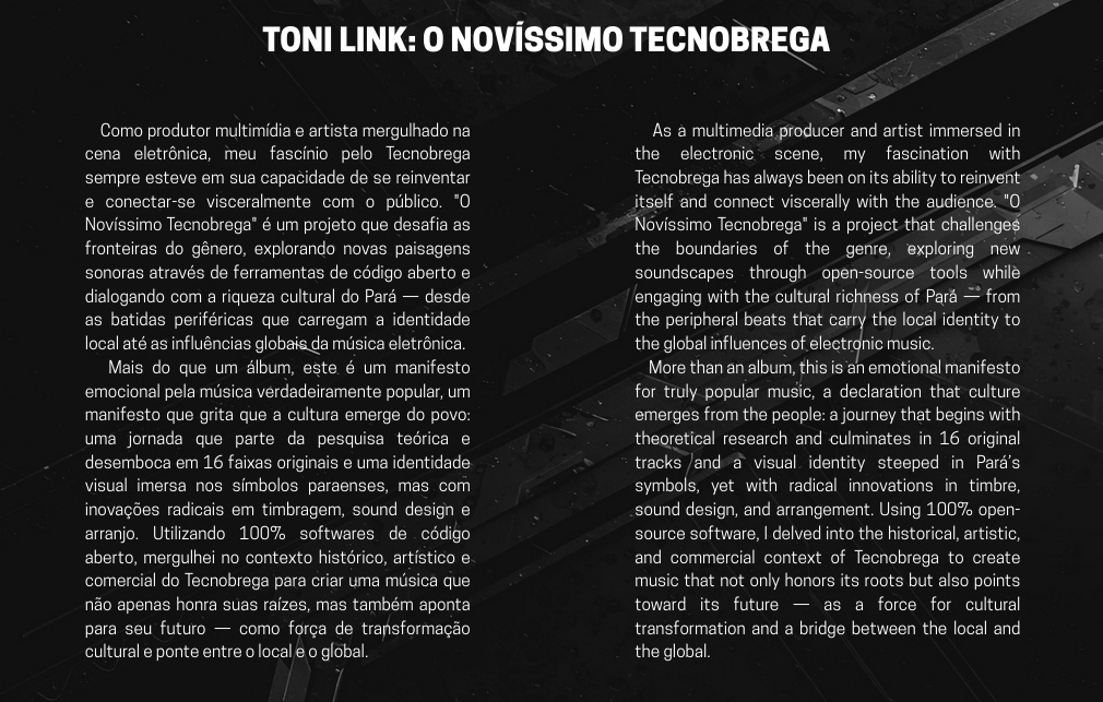 After 1 year of work I’m going to release this project. You can search my older posts here on the forum to understand what “Tecnobrega” is about.