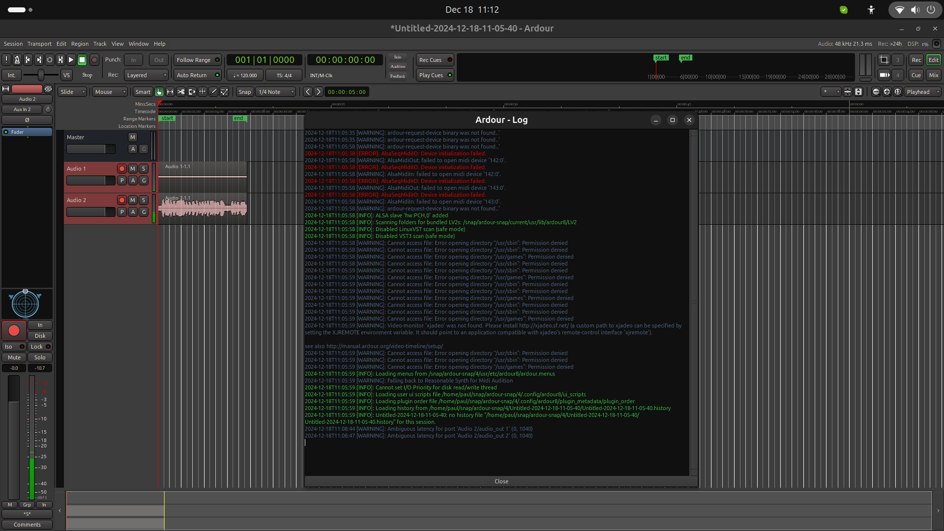 New to Ardour forum, application and configuring Linux. I have no sound output. Input seems to be working. Can anyone help?