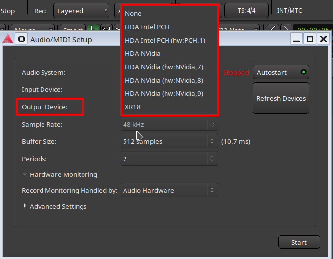 Now that I’m actually trying, absolutely no sound is coming out cause everytime I open Ardour it sets himself to DummyAudio and no sound comes out even using the keyboard or another plugin