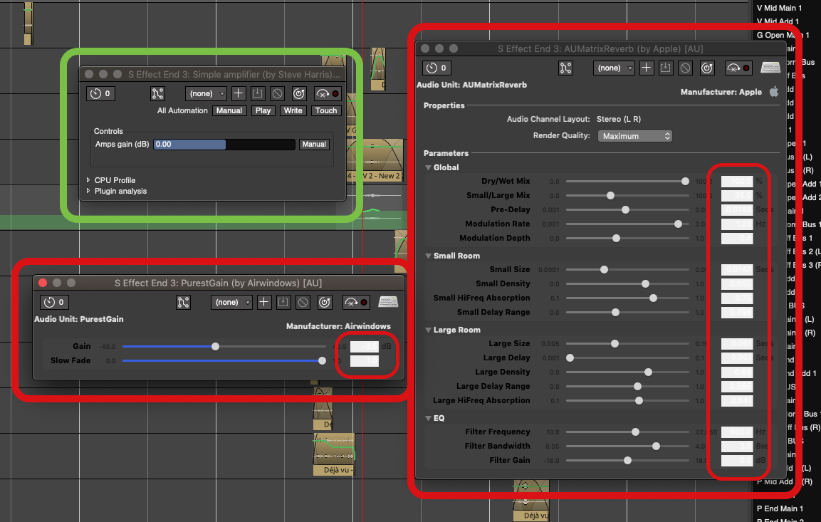The red plugins are custom Audio Unit GUIs (made by Apple, or auto-generated by Apple). The plugin host has no control over their look/feel.