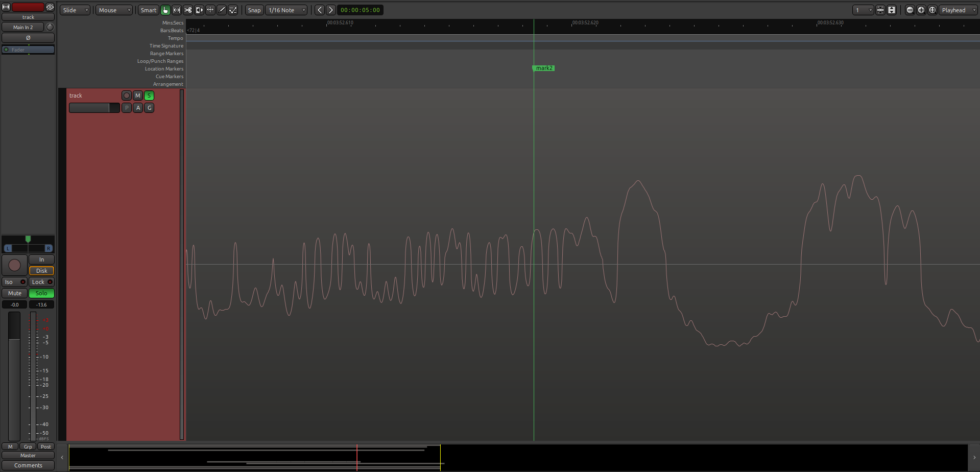 After using the “Freeze” feature, observe there’s a 1-sample spike (audible) immediately to the right of “mark2”: