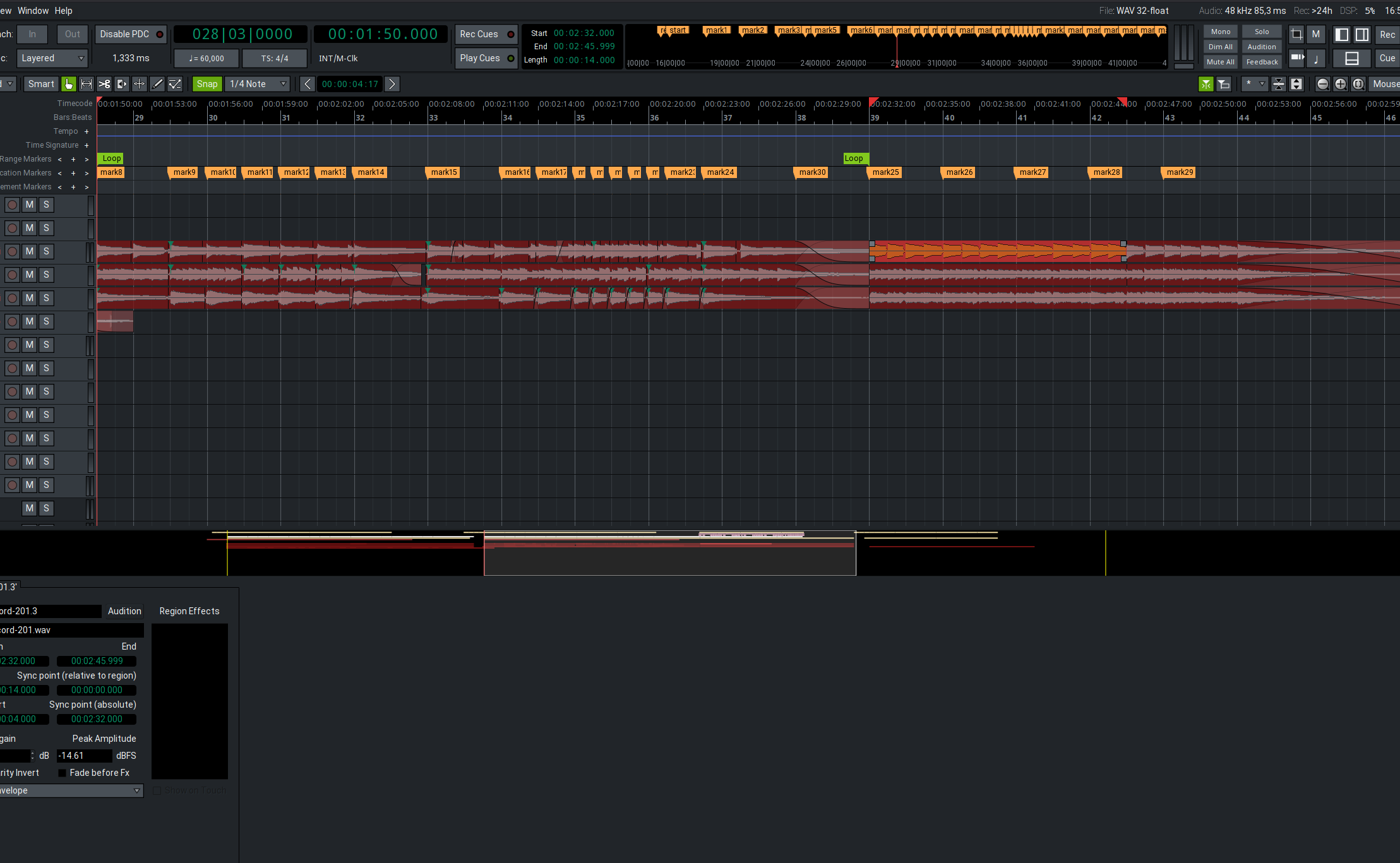 The bottom panel is disabled, but when you select an audio region (not a MIDI one) it gets activated. The button on the toolbar stays deactivated.