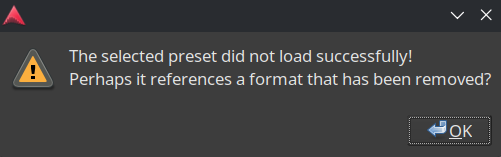 So perhaps pick a different one, or use empty present, add mp3 as format (tab below the preset select).