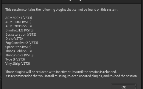 Ardour shows a dialog that it can’t find two VST3 plugins!