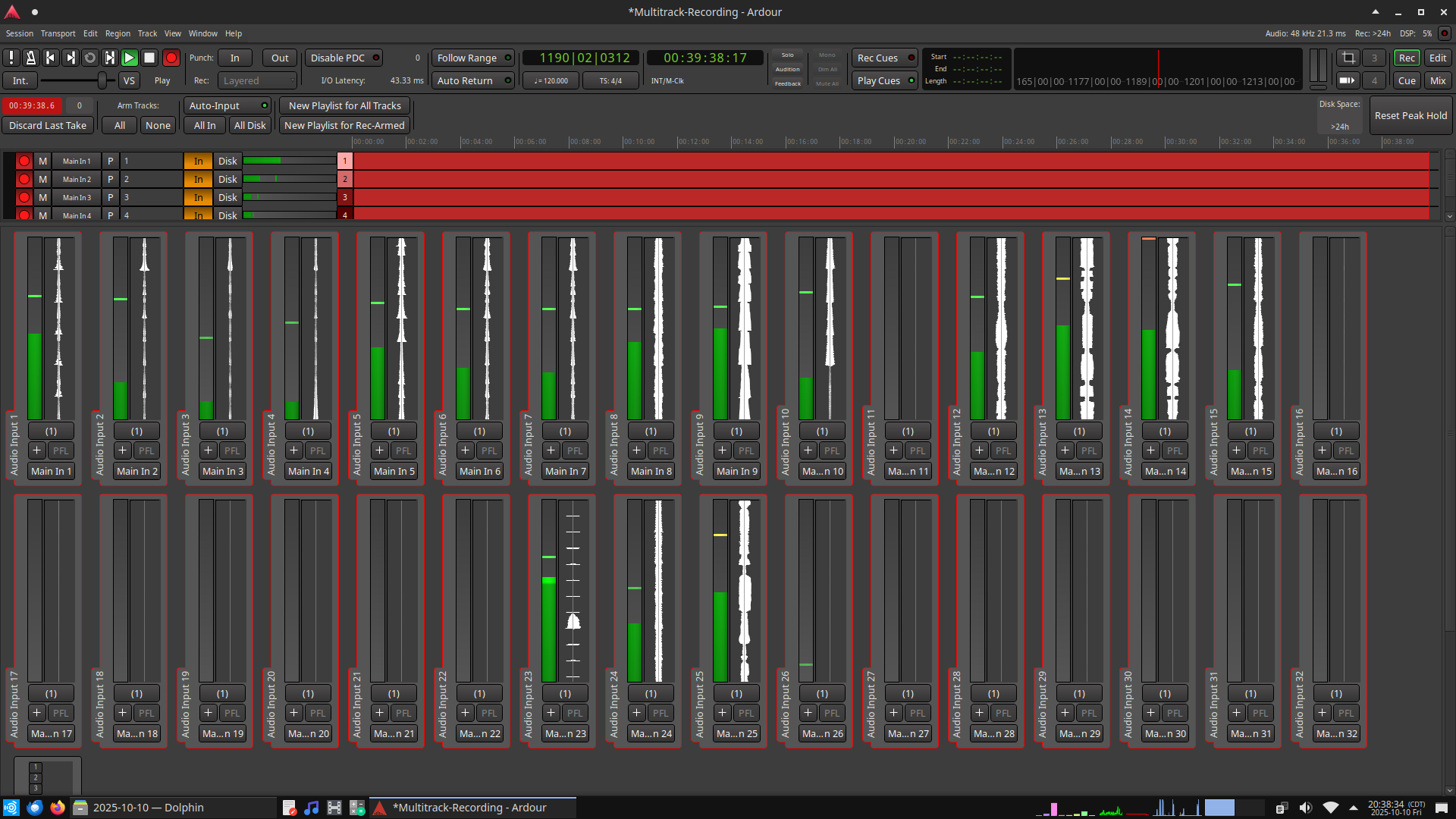 Alas not on your screen. It doesn’t fit 16 in a single row (try with an image editing tool and your screenshot). There could be at most 15 and Ardour always uses an even number of meters per row, so you get 14.