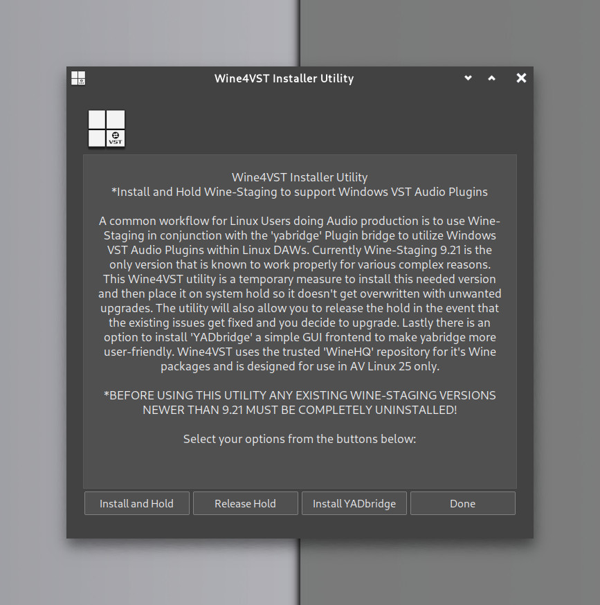 For about to be released AV Linux 25 I had to make a little utility to automate this because Wine-Staging and yabridge are not in great shape currently…