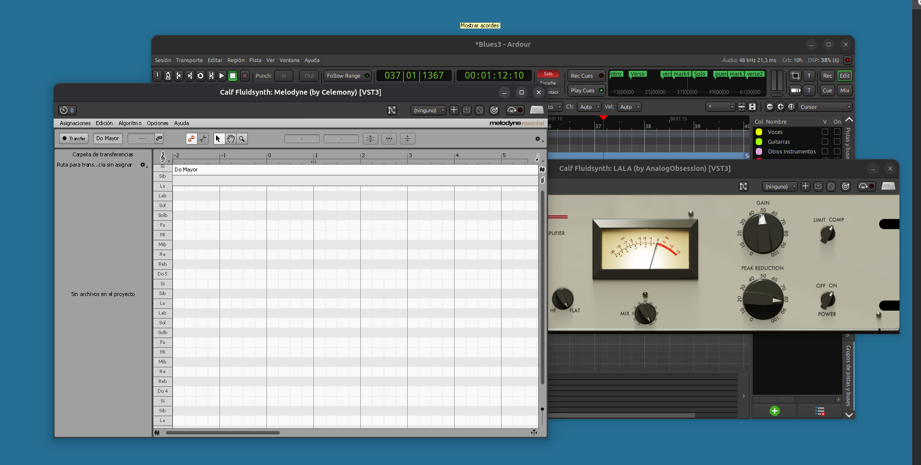 And it works. These screenshots show the Melodyne and LALA plugins working in Ardour.