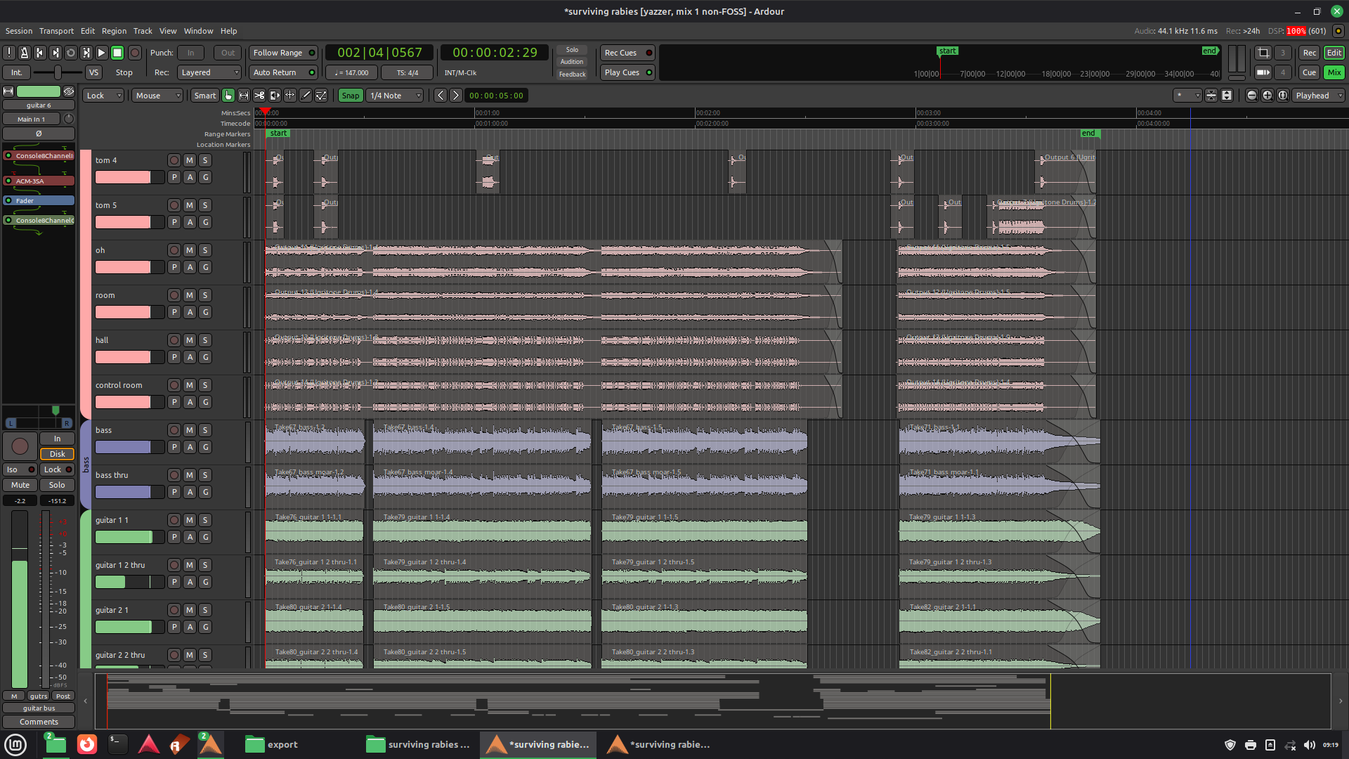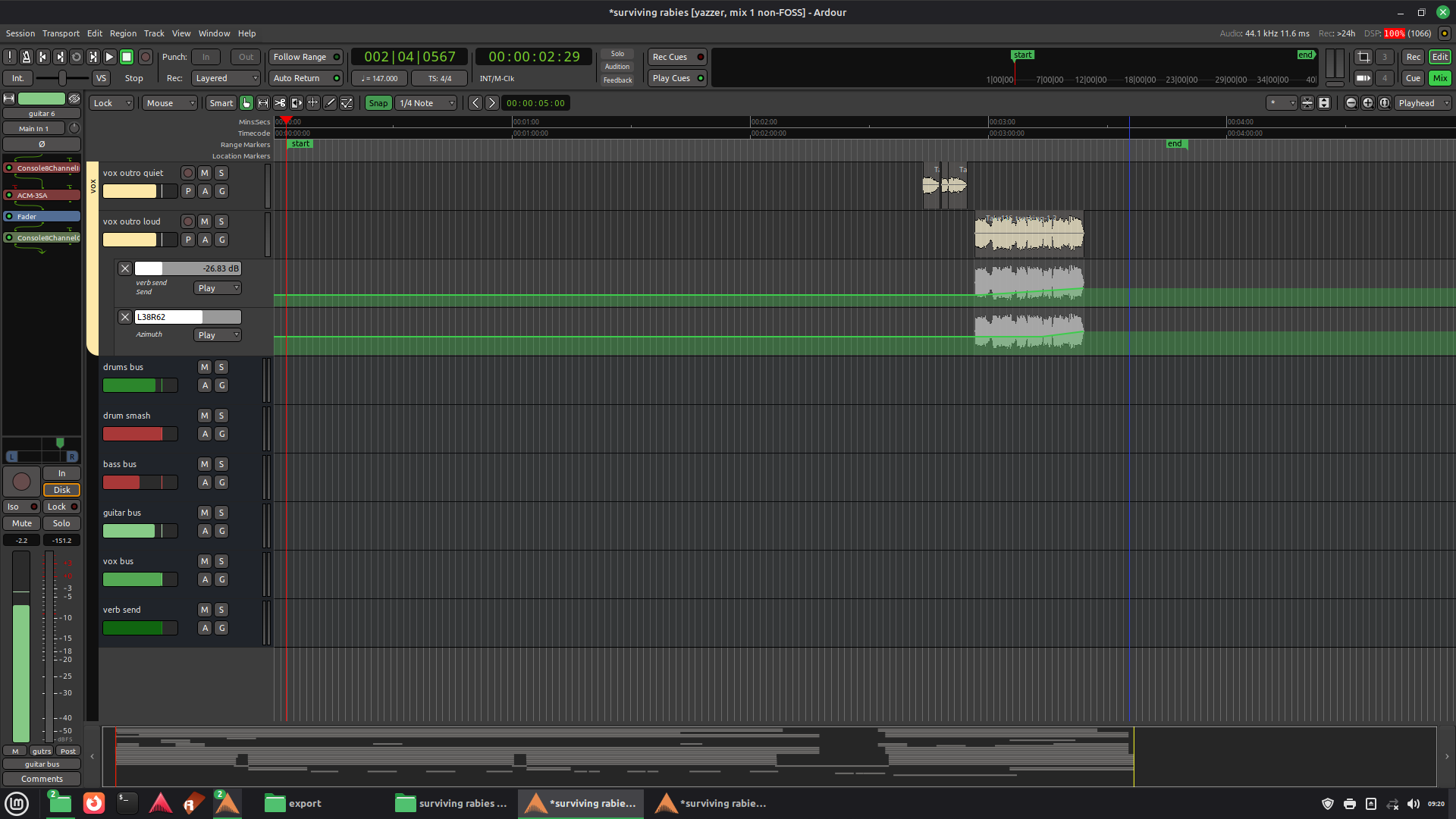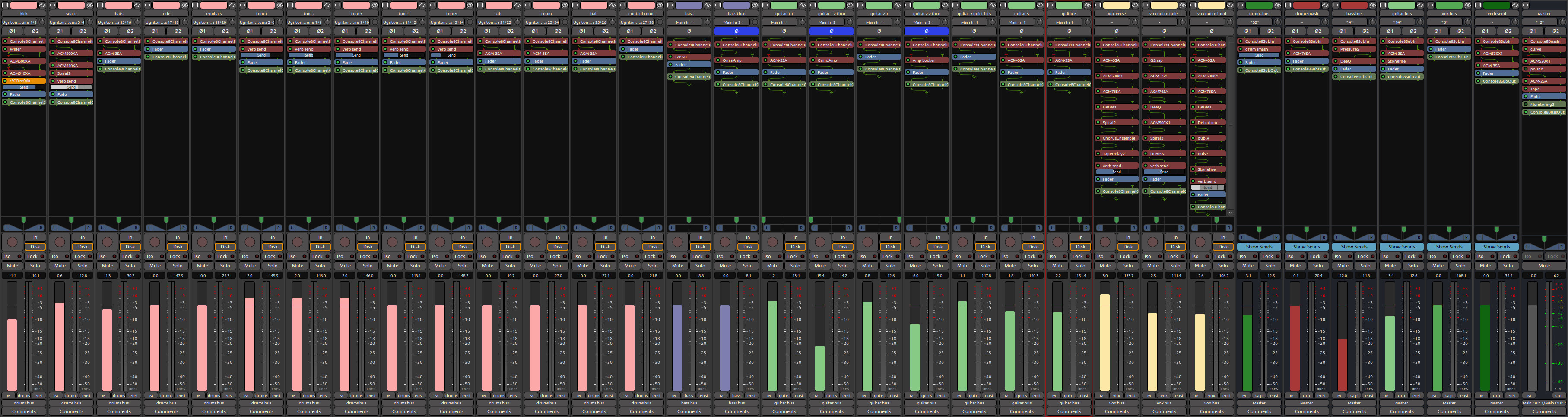 LSP Referencer might then make an appearance on the mixbus post-fader and I’ll try stay in the same time-zone as what I’m referencing. For surviving rabies and all these other tunes, I’m using early 90s Afghan Whigs material (hence mid-heavy, not too bassy) because it’s objectively the greatest music on the world and anyone who disagrees with me is objectively wrong