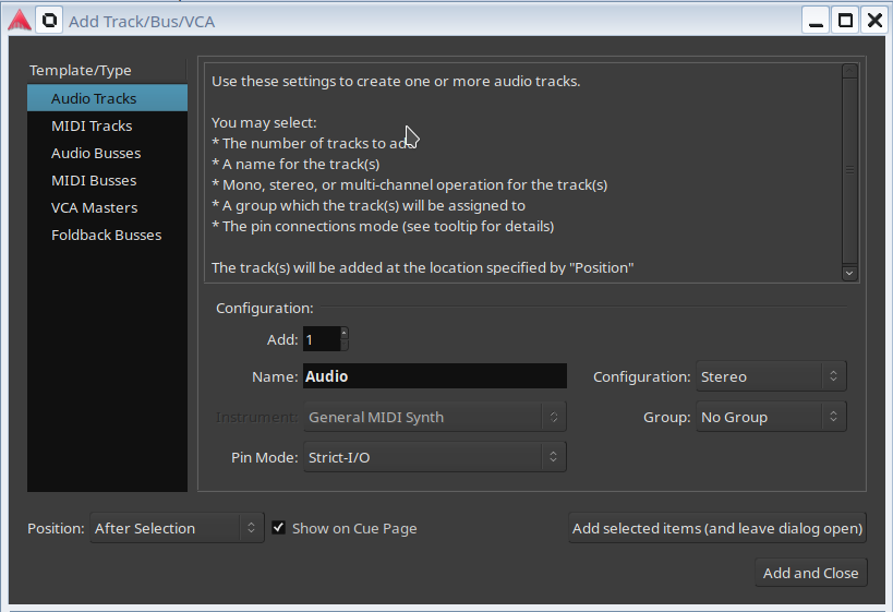 Create a Track (Track menu, “Add Track, Bus or VCA”) set it to audio, and make it a stereo track.