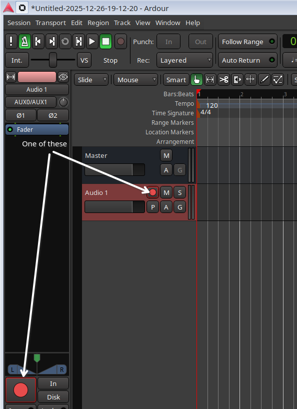 Might be a good idea to read Ardour’s manual, especialy if it’s your first DAW, don’t you think