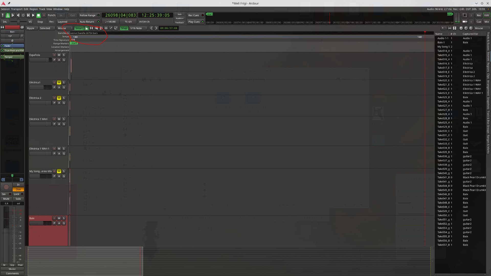 Well the playhead is 12 hours into the session. With a 140 BPM that it seems plausible that you’re at bar 26 thousand. – That’s quite a symphony you compose there ![]()